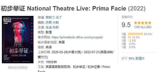 National Theatre Live: Prima Facie | 豆瓣9.5